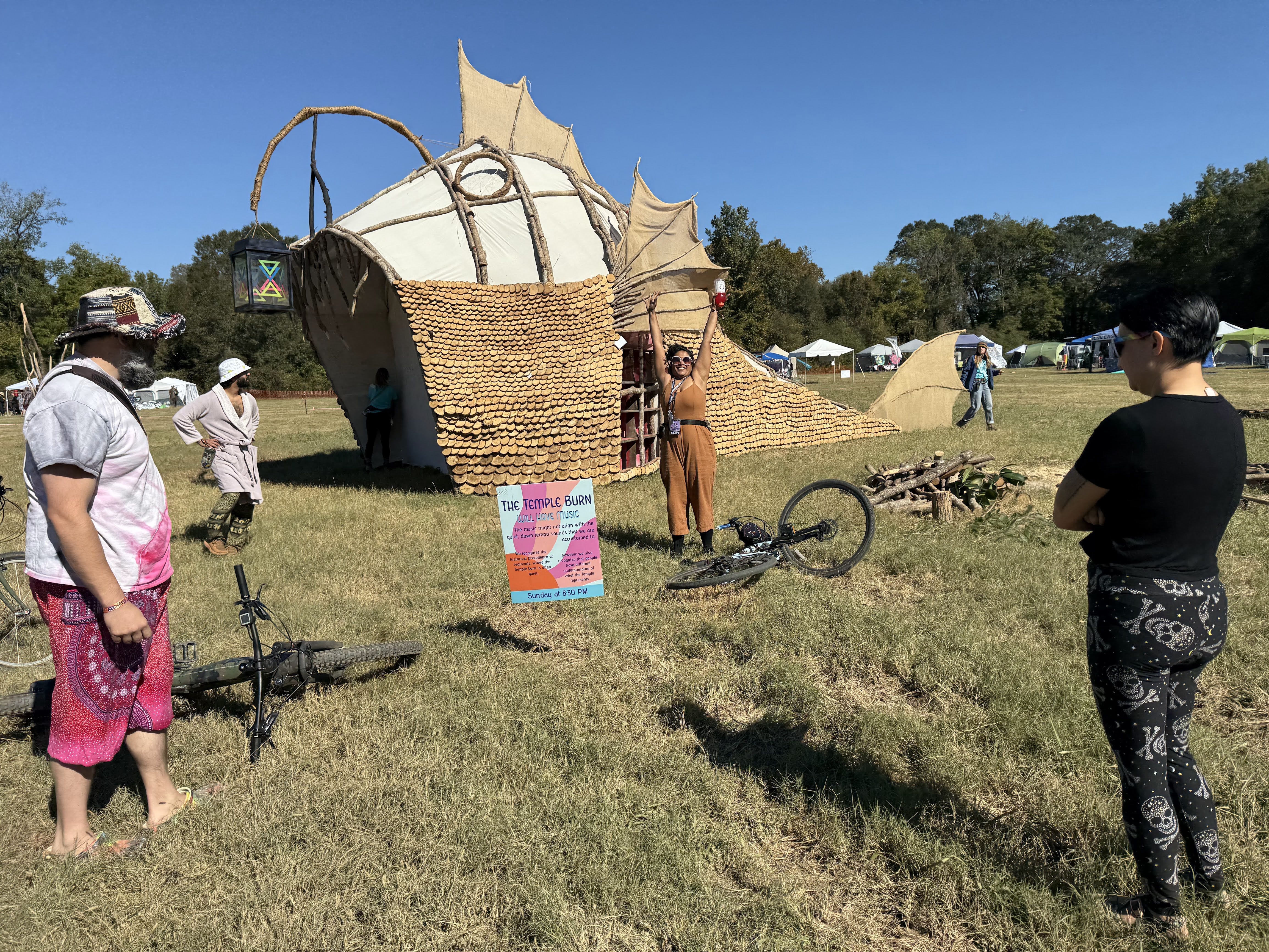 When I returned to Atlanta in 2022 with the decision to place roots, I wanted to take steps towards deeper participation in creating the magic of Alchemy. The following fall, in 2023, with a team of other cyclists, BBBbikes camp first came to Alchemy. BBBbikes camp brings a bike share that is available to all burn participants. I was just months into healing after my jarring cycling accident. Seeing our bulky blue bikes rolling through the burn motivated me to keep providing this gift.