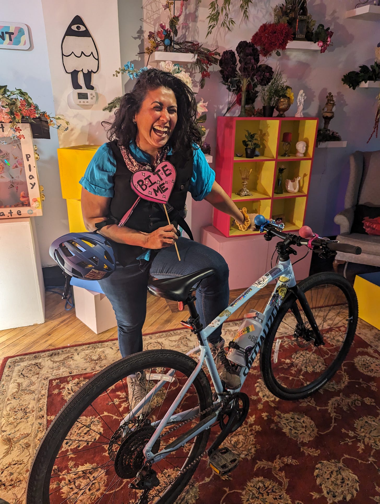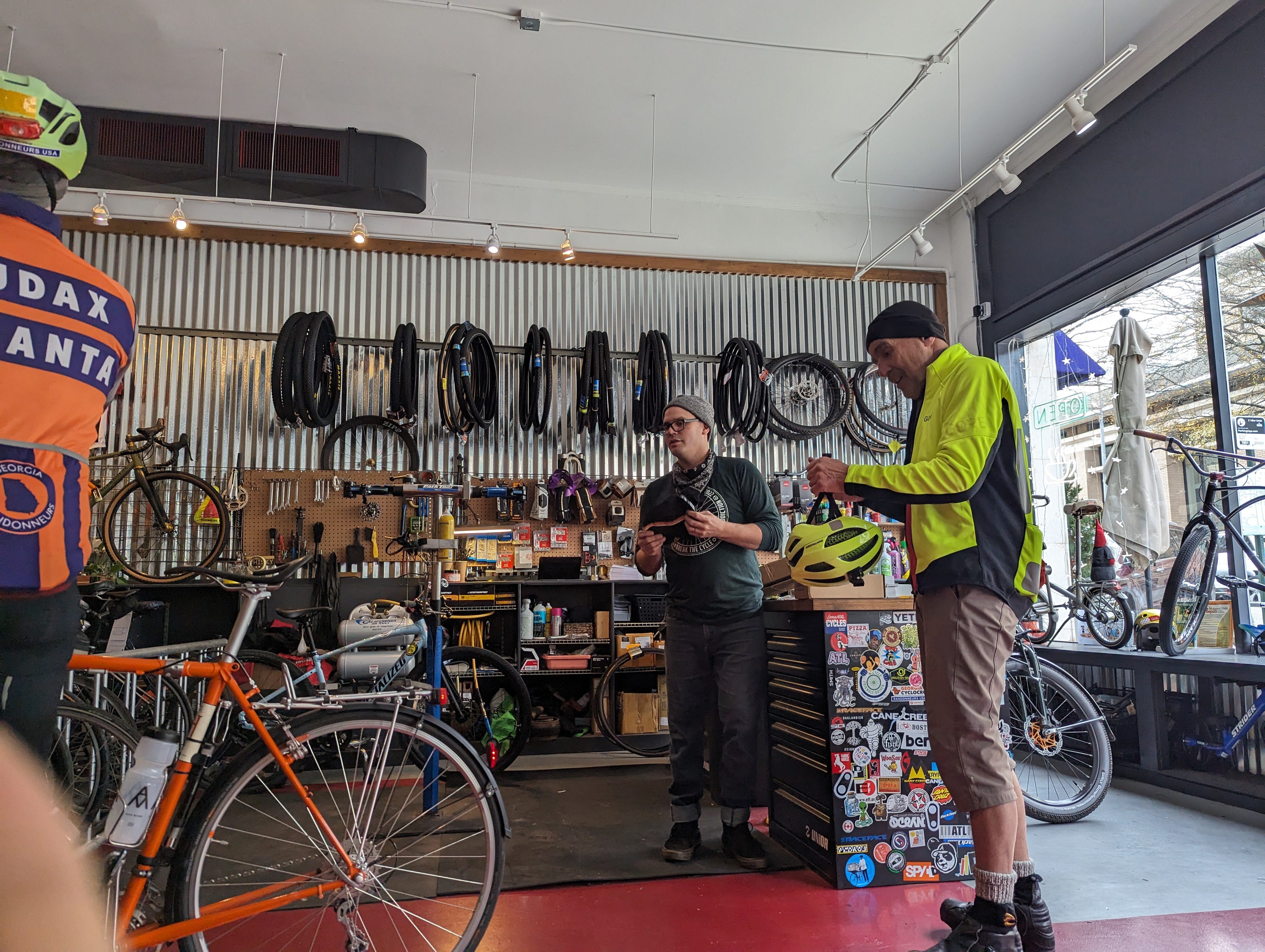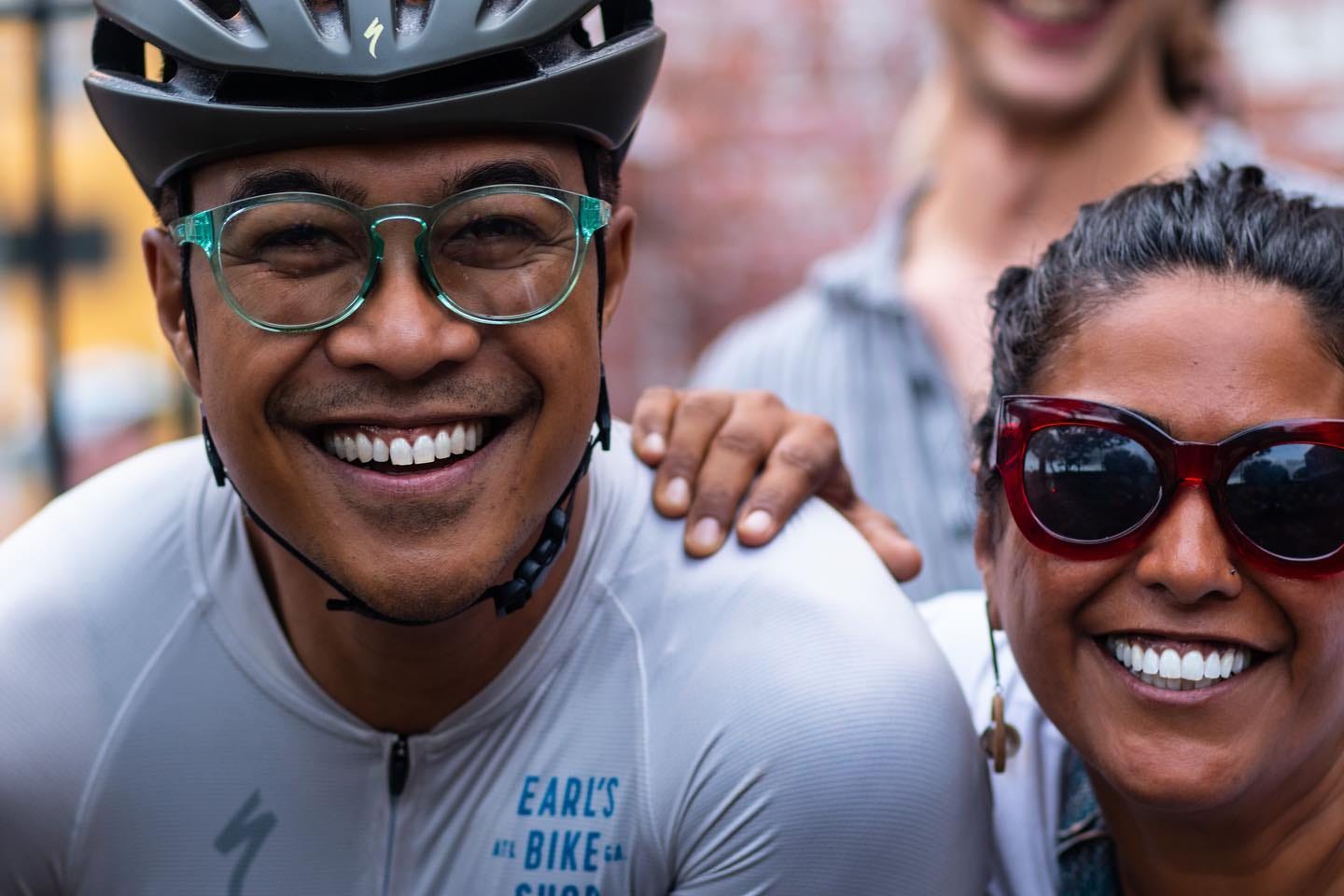 The last M+M ride took place on Monday, May 15, 2023. It was a gorgeous day to ride. It was the third official day of events in the 2023 Atlanta Cycling Festival. Our friends were there. We were feeling festive. At Georgia Beer Garden, an ACF photographer was taking pictures of the scene of cyclists. I rolled up just in time to photobomb Earl of Earl's Bike Shop.